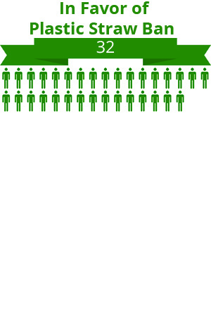 Yes: 32 people were in favor of banning plastic straws unless a customers specifically requests one.