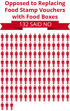 No: 132 citizens were opposed to replacing food stamp vouchers with boxes of food.