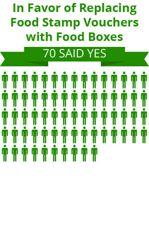 Yes: 70 citizens were in favor of replacing food stamp vouchers with boxes of food.